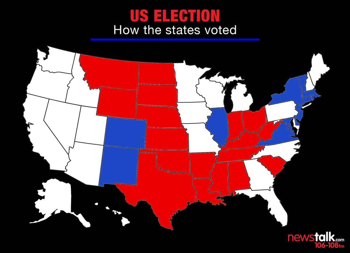 Polls are closed in North Dakota, South Dakota, Wyoming, Nebraska, Texas and Kansas, which are going to Trump